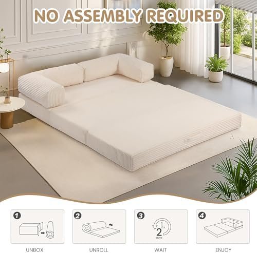 ✨️NO ASSEMBLY REQUIRED – Say goodbye to complicated furniture assembly! This compression sofa arrives ready to use. Simply unbox and gently pat each section of the floor couch, then wait as it regains its original charm! For optimal comfort, full recovery may take up to 48 hours. Enjoy the effortless setup experience!