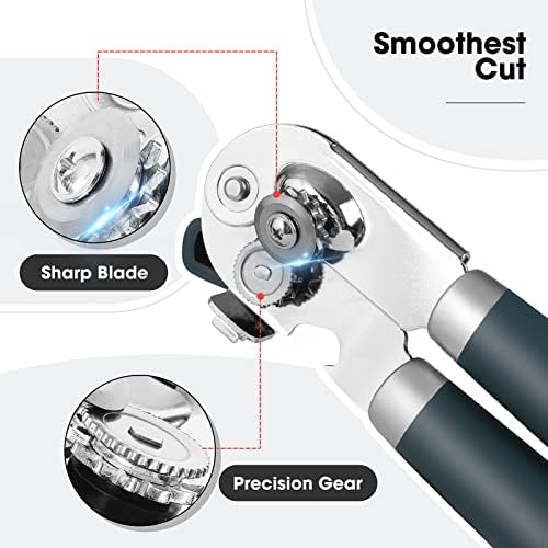 Smooth Edge Can Opener – The most basic principle of the manual can opener is to use a gear to drive a sharp blade to make a circle to open the can lid. So we improved the precision of the gear and used high carbon steel blades instead of ordinary blades, the razor-sharp blade and precision gears work perfectly together to cut the lid smoothly with every revolution of the blade. so don’t worry about getting scratched by the burred edge of the can when scooping food from the can