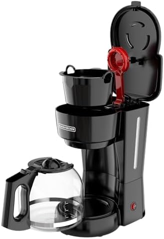 BLACK+DECKER 12-Cup Coffee Maker with Easy On/Off Switch, Easy Pour, Non-Drip Carafe with Removable Filter Basket, Black. This Coffee Maker is your kitchen friendly coffee maker, with just a flip of a switch you get up to 12 cups of hot coffee ready to go. And with the Sneak-A-Cup Feature, you can grab a cup of coffee before brewing ends. Includes a removable filter basket that is dishwasher safe.