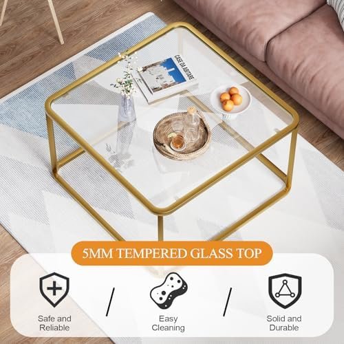 【Elegance& Fashionable】The glass coffee table has a stylish and elegant design.You can place it in the living room, bedroom, office, apartment, etc,26.7 x 26.7 x 17.7 Inches, this glass coffee table is suitable for large and small spaces. It will not only decorate your space but also meet your storage needs.