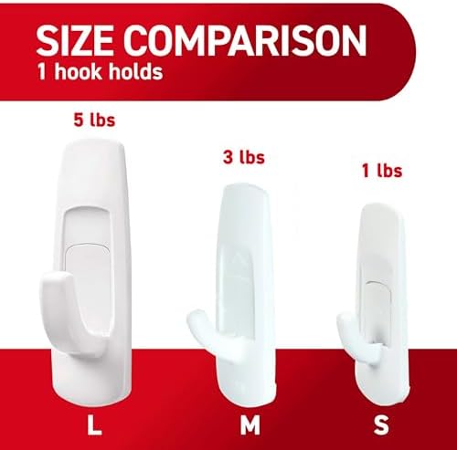 Command White Large Utility Hooks let you decorate and organize how you want, when you want, without damaging your walls and surfaces. A great home improvement item, these no damage wall hooks stick on a variety of smooth surfaces without leaving holes, marks or sticky residue. Use these hanging hooks to hang clipboards, brushes, dog leashes, kitchen utensils, home decor and accessories. Simply mount these wall adhesive hooks on painted walls, finished wood, painted concrete cinder blocks, laminate, glass, metal and tiles and enjoy the damage free hanging of your favorite decorations and organizers. Perfect for home renovators and college students, use these wall hooks for hanging decorations and organizers in your home, office, apartment or dorm room to elevate the appearance of your living or working space without tools. Directions are included; follow the directions closely to use the wall hangers as intended. A clever decorating and organizing solution that doesn’t damage surfaces, these large tool free wall hangers will help you fearlessly change your space. One package contains seven white utility hooks and 12 large adhesive strips. Each single utility adhesive wall hook can hold up to 5 pounds. Decorate, organize and celebrate damage free with Command.
