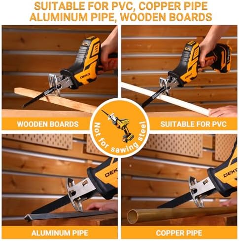 [POWERFUL MOTOR]20 V High Power Reciprocating Saw is powered by a high quality motor with 3000 SPM max and 19/32 inch stroke length, which can cut through wood, metal and pvc pipe efficiently and easily. Variable speed trigger provides users with better speed control