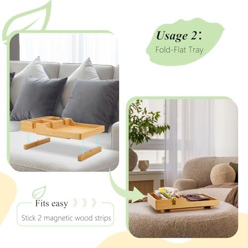 2 In 1 Couch Tray: Insert between cushions for anti-tipping for beverage drinks; SECONDLY, Fold-Flat Tray for anywhere,like ottoman.