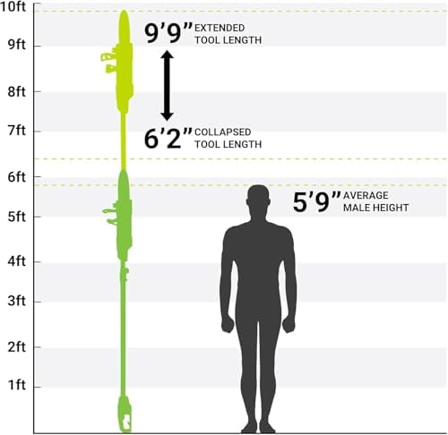 QUICK TOOL-FREE ASSEMBLY: The extension pole attaches easily without tools, providing up to 10 feet of reach. This tree trimmer’s extended reach allows you to easily trim high branches without needing a ladder.