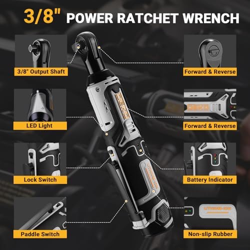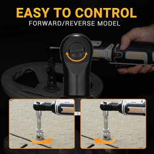 【High-Performance】DEKOPRO cordless ratchet wrench is equipped with a 12-volt motor. It delivers a maximum torque of 30 ft-lbs at 230RPM and comes with a variable speed trigger for excellent control.