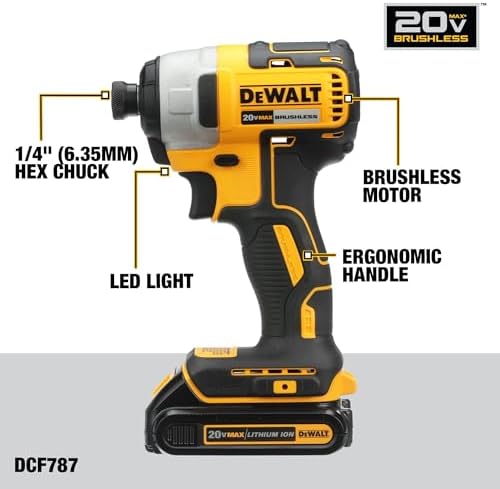 This DEWALT 20V MAX* brushless kit includes one 1/2 in. drill/driver, 1/4 in. impact driver, two 2.0 compact batteries, charger, and a contractor bag. The DCD777 1/2 in. drill driver is designed with a high-perofrmance motor that delivers 340 unit watts out. The DCF787 1/4 in. impact driver has a compact and lightweight design while providing 1,500 in-lbs. of torque.