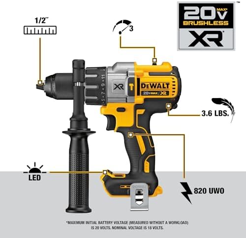 DCD996 20V MAX* 1/2-inch hammerdrill in the drill/ impact driver combo kit has a compact size (8.4-inch front-to-back length) and lightweight (4.7 lb) design to fit tight areas