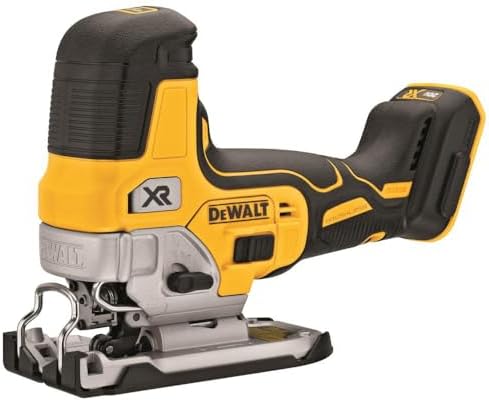 Our 20V MAX XR Cordless Jig Saw with Barrel Grip features an efficient motor for powerful performance and extreme runtime. Precisely control blade speed up to 3,200 spm with the variable speed trigger and dial, for professional results no matter what you’re cutting. 4-position orbital action lets you adjust for optimal cutting of a variety of materials. A bright LED light illuminates dim work surfaces and makes it easy to follow cut lines. The updated all-metal, lever-action keyless blade clamp is designed for quick and easy blade changes of t-shank cordless jig saw blades. Also keyless, the shoe bevel is easy to adjust with detents at 0 degree, 15 degree, 30 degree, and a positive stop at 45 degree. A removable shoe cover helps protect materials from scratches, and an integrated dust blower helps remove dust and debris from your line of sight as you cut.
