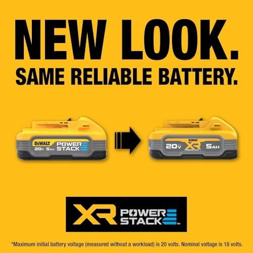 Our most powerful battery in its class, the 20V MAX* XR POWERSTACK 5.0 Ah Battery utilizes revolutionary pouch cell technology to deliver 50% more power, 50% more work per charge, and 2X the lifespan. Compatible with all DEWALT 20V MAX* tools and chargers, the XR POWERSTACK 5.0 Ah Battery features an impact-resistant, rubber overmolded base and includes 3-LED Fuel Gauge state of charge indicator.