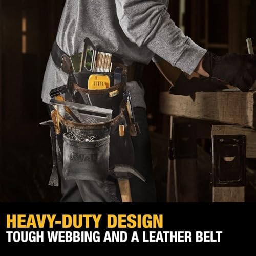 Access your tools, accessories, hardware, and more in the DEWALT Leather Pouch with Belt. Designed to withstand harsh jobsite conditions, this top-of-the-line storage solution keeps everyday essentials organized and ready with 12 pockets of varying sizes. Lightweight and portable with an easy-carry handle, this premium leather pouch provides ample room for your necessities.