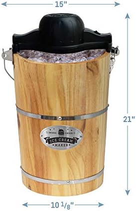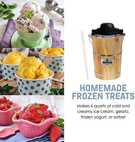 Elite Gourmet Old Fashioned 6 Quart Vintage Wood Bucket Electric Ice Cream Maker