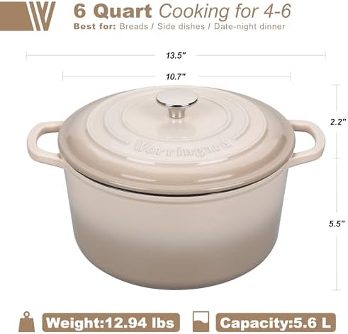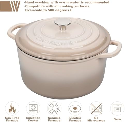 VERSATILE USE: The Vorringard enameled dutch oven Can be used for slow-cooking, simmering, braising, baking, or roasting a wide range of recipes. Perfect for cooking, serving, moves from refrigerator to stove top or oven to the table