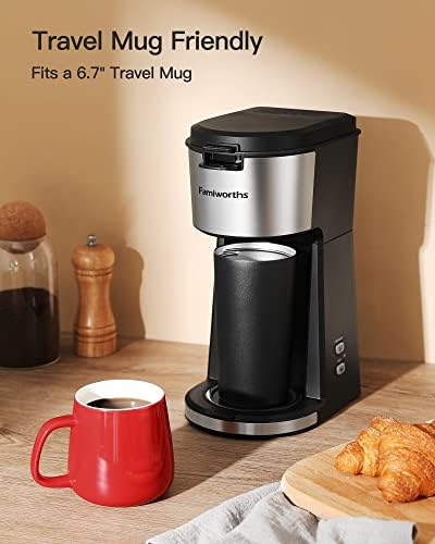 Compact Size and Perfect for Cups On The Go: This mini coffee maker doesn’t take up a lot of counter or cabinet space and is easy to transport, so you can take it with you when camping and traveling. This small coffee maker accommodates travel mugs up to 6.7″ tall and the removable drip tray can hold a full accidental brew for easy cleanup