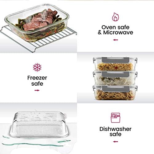 Microwave & Oven Safe Convenience: Simplify your cooking and reheating process with our oven safe and microwave safe glass containers. Their versatile design is perfect for busy lifestyles, allowing for easy transition from freezer to microwave or oven