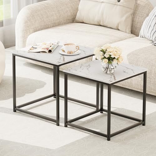【Multipurpose Use】: The set of 2 nesting coffee tables is compact in size and lightweight, facilitating easy movement. You can place these end tables separately throughout the room or keep them nested. Ideal for living rooms, bedrooms, balconies, small spaces, and more.