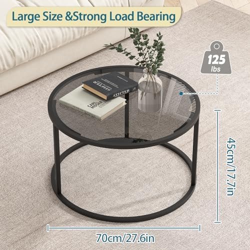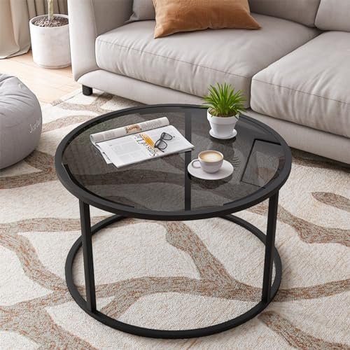 Elegant Round Coffee Table: Small coffee table is made of 6mm Explosion-proof glass and sturdy metal frame,a minimalist modern center table with rational structure, it offers a durable and stable daily use to last years.