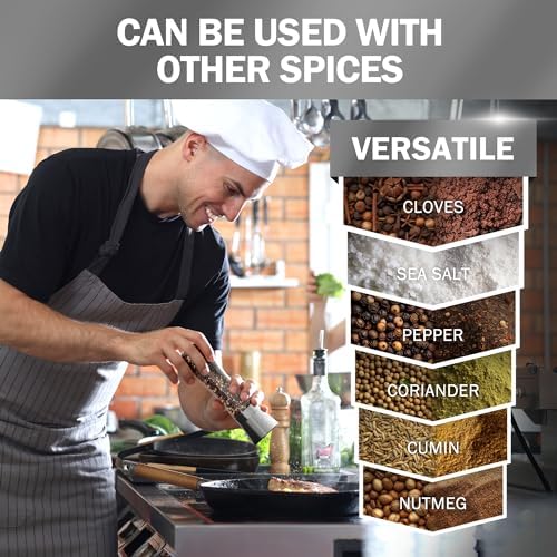 Easy to Refill – 6OZ Capacity = Less Refills : Our Salt and Pepper Mills are 7.5” tall and each salt shaker and pepper shaker will hold up to 3/4 cup or 6 oz of the salt, pepper or the spice of your choice. Just unscrew the grinder from the bottle to refill. Manually Cranked = No Batteries = Environmentally Friendly salt and pepper grinder sets. Effortlessly twist with your hand grind fresh ingredients!