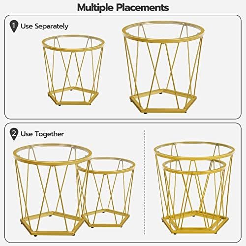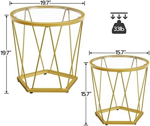 Solid Construction and Strong Load Ability: The carefully selected materials combining the solid metal frame and high-quality tempered glass cast a firmly constructed gold coffee table with strong load ability. The maximum static load of each side table is 33 lb, which greatly increases the utility of this end table set