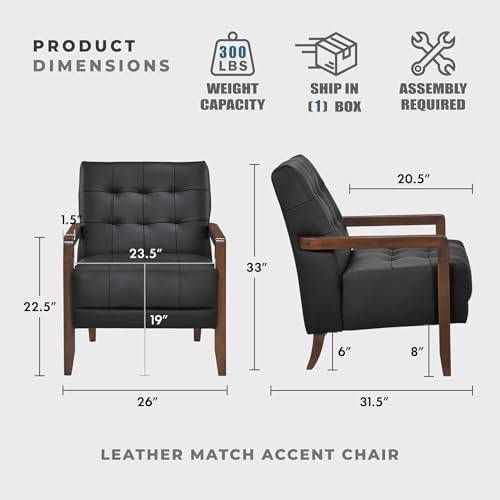 [Perfect Size & Build to Last] Overall size: 26″W x 31.5″D x 33″H; Seat Width: 23.5″; Seat Depth: 20.5″; Seat Height: 19″; Arm Width: 1.5″; Arm height: 22.5″. The solid wood chair frame with sturdy connection and can support up to 300 lbs