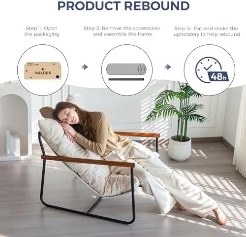 Easy Assembly: The arm rest made of FSC-Certified wood. Setting up this chair is a breeze, with all necessary tools, instructions, and components included, allowing you to have it assembled and gracing your space within 15-30 minutes. The cushion recovers its elasticity after about 48 hours of breathing for a superior feeling of use