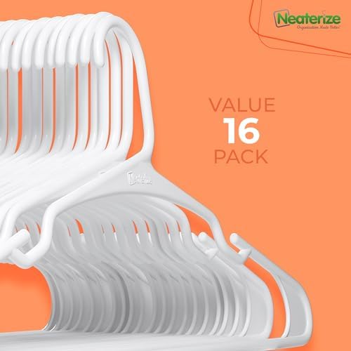 ★ PATENT PENDING UNIQUE DESIGN: Discover the game-changing hanger shape by Neaterize, designed to prevent the dreaded slump of suits and dresses. Our patent-pending design guarantees that your clothes hang flawlessly, maintaining their pristine condition and alignment exactly as you arranged them. Plus, a clever notch caters to those sleeveless garments in your closet. Measures 15.9’’ x 7.4’’ x 0.22’’ and is available in packs of 16, 30, 50, or 100 – we mean it when we say we’ve got you covered!