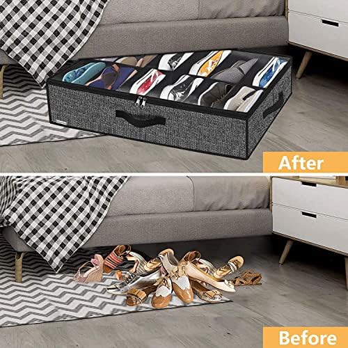 LARGE STORAGE CAPACITY: This shoes under bed organiser set can store up to total 24 pairs of flat shoes or 12 pairs of sneakers with ease. Foldable to save space when not in use. Large size: 29.3″x23.6″x5.9″(74.5x60x15cm), each cell: L11.8″x W4.9″x H5.9″(30×12.4x15cm), more suitable for women and girls.