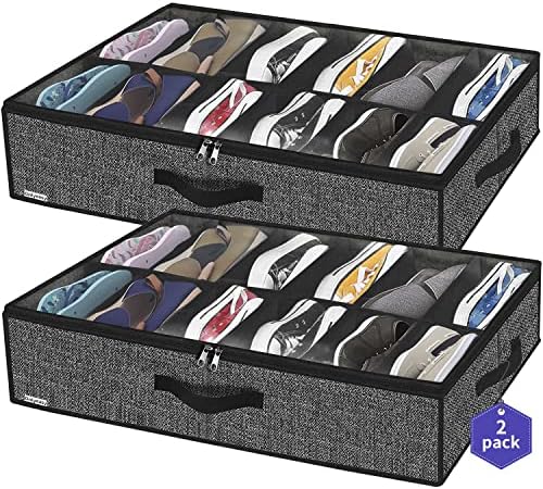 Onlyeasy Sturdy Under Bed Shoe Storage Organizer, Set of 2, Fit 12 to 24 Pairs