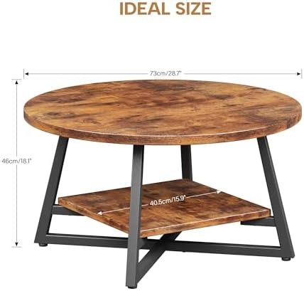 【2-Tiered Round Coffee Table】Overall Size: 28.7″D x 28.7″W x 18.1″H. This round coffee table features a 2 tier design, offering both a tabletop for immediate use and additional storage space. It’s an ideal solution for keeping your living room essentials neatly arranged. The lower shelf is perfect for stashing away magazines, books, or toys, while the upper surface allows you to showcase your favorite decorative pieces or collectibles, adding a personal touch to your living area.