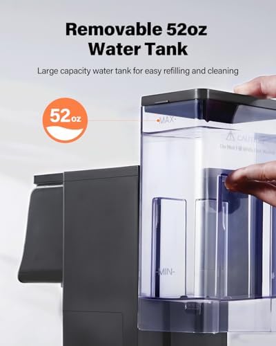 【52 OZ REMOVABLE RESERVOIR】Large water tank enables brewing multiple cups at once, eliminating the need for frequent refills. Perfect for using it for the whole family!
