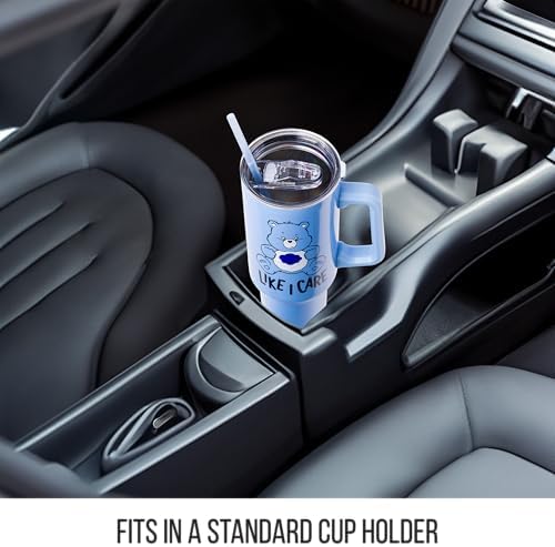 GRUMPY BEAR: Join Grumpy Bear with this double-walled stainless steel travel tumbler that holds 40oz. Designed in a light blue background, it features Grumpy Bear from Care Bears saying “Like I Care.” It includes a secure sliding lid and straw to stay hydrated on the go. It can even fit in your standard-size cup holder!
