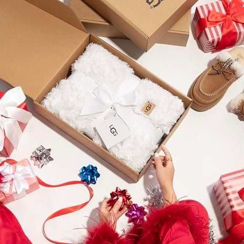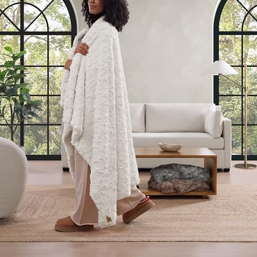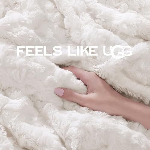 UGG Textured Faux Fur Blanket: Elevate your home decor with this lightweight, fluffy couch blanket, featuring a beautiful wave textured faux fur design. Made for warmth and softness, it enhances bedroom decor, making it a cozy throw blanket for bed