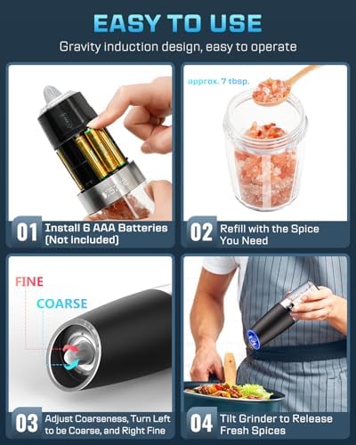 XinXu Gravity Automatic Electric Pepper and Salt Grinder, Auto Salt or Pepper