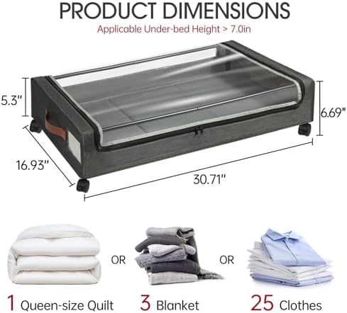 Easy to Install: This rolling storage bin is designed to easy installation and hassle free.Including user-friendly instruction and require minimal effort to set up, which also means you can quickly install and utilize the underbed storage space,saving valuable time and effort,ideal for bed rotting, the blind, and seniors with mobility issues
