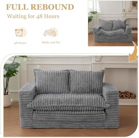 【Convenient Shipping & Setup】The loveseat sofa is compressed and vacuum-sealed for efficient shipping, reducing both space and carbon emissions. Once unpacked, allow the sofa bed to expand for 48 hours to regain its full shape and size, ready to provide comfort and functionality.